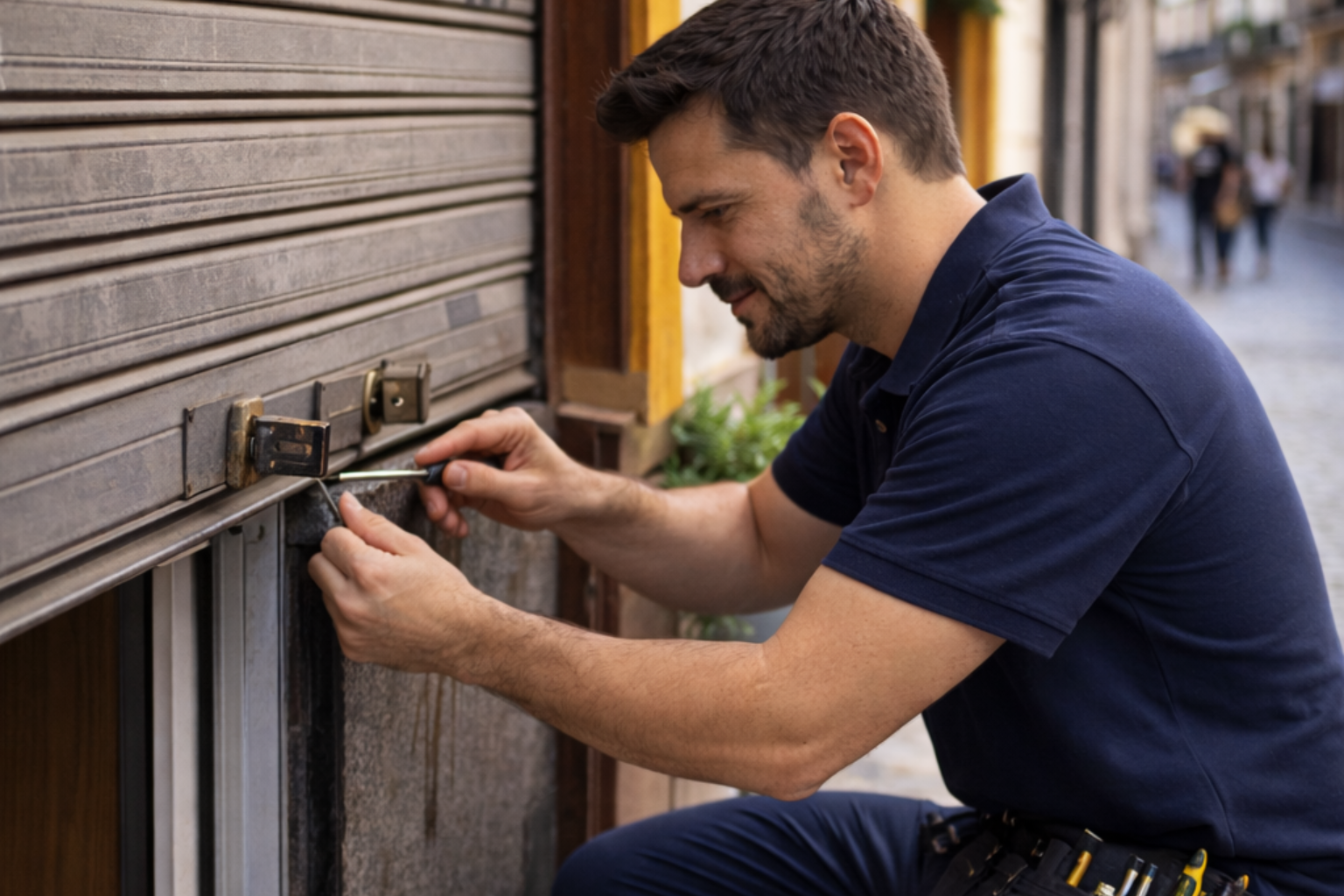 Si la persiana de tu negocio no sube o el cierre queda bloqueado, actuamos con urgencia para que puedas abrir cuanto antes. Trabajamos con cierres metálicos y sistemas habituales en locales comerciales de Sevilla.